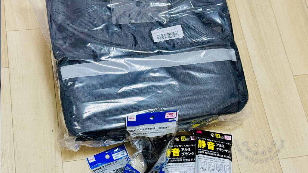 100均(ダイソー)でスマホホルダーを探している時に思わず手にとったサドルカバー、一瞬だけ雨上がりに活躍してくれました。