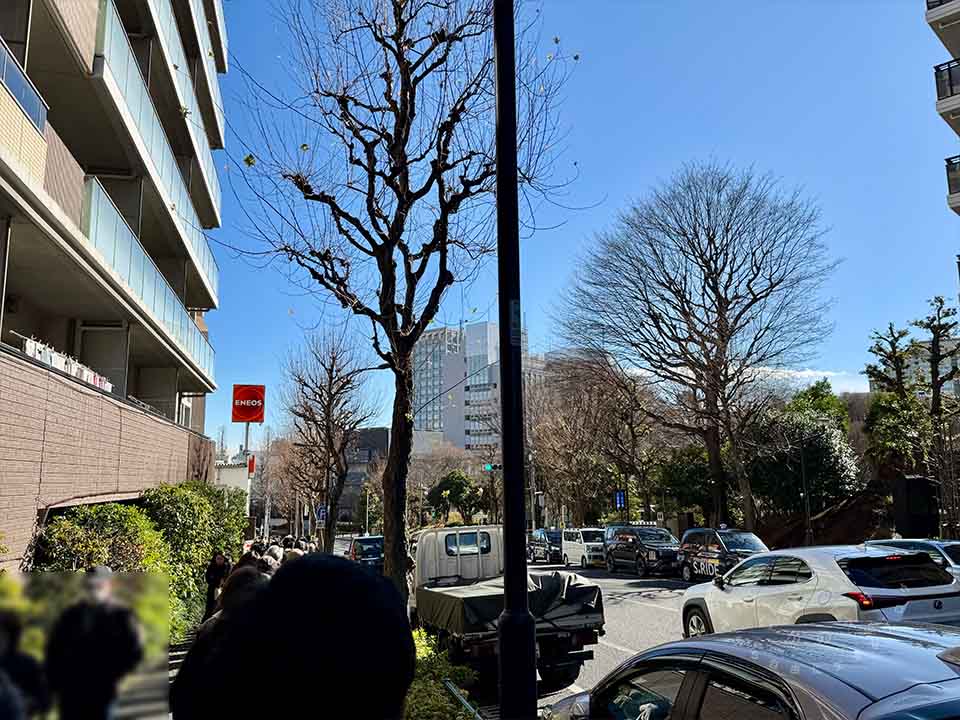手前の青い誘導係の方が「ここは最後尾ではありませーん!」と誘導してくれています