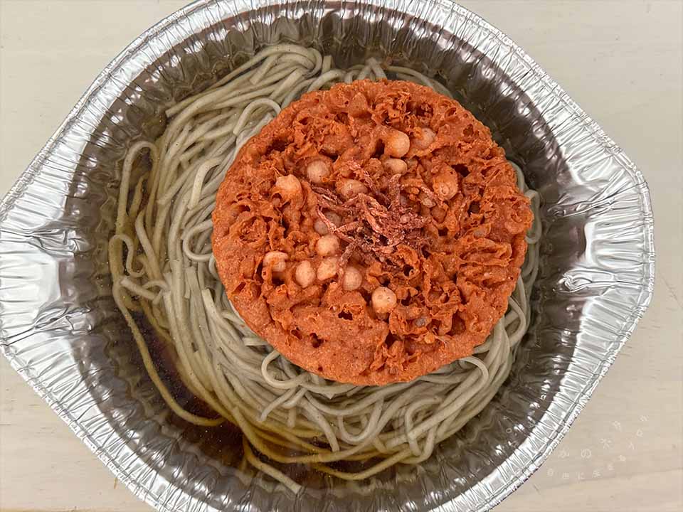 かき揚げと蕎麦つゆは2人前なのにそばは1人前しか勝ってないや