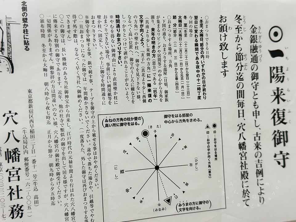 2026年の大晦日から元日にかけて、一陽来復御守をお祀りしました。